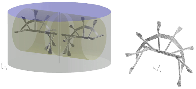 The aim of this work was to find possibilities to reduce the energy consumption of paddle stirrers used in biogas digesters. Two different stirrer types were investigated by using numerical simulations, one with a vertical axis the other one with a horizontal axis. Additionally, two different viscosities were applied to the simulations.