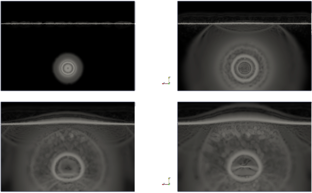Fig. 3: Simulation of an unterwater explosion using the newly developed solver