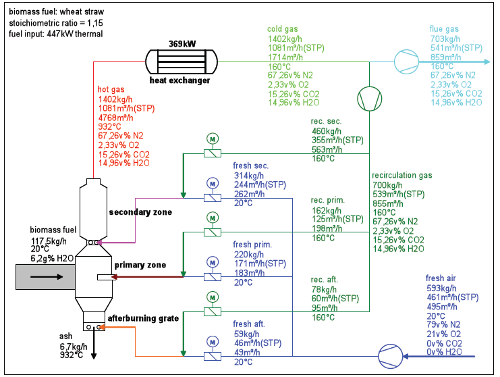 - Combustion calculation, mass- and energy balancing (Process simulation )