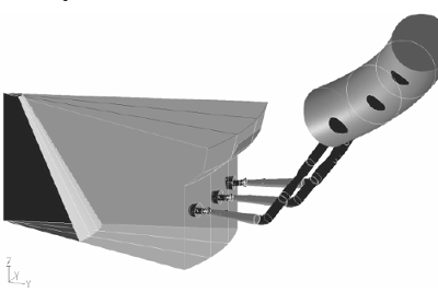 Detailed blast furnace geometry – simulated section in the lower part of the furnace featuring three of 32 tuyéres and also includes the hot blast pipes.