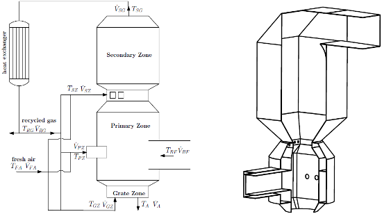 With the result of the simulation, a suitable design of the individual combustion zones can be developed applying a repetitive approach. Furthermore, experiments are carried out to enable the validation and calibration of the calculation models and their parameters. Regarding the improvement of the control engineering, prefabricated parts of the plant such as valves for the fresh and recycled air are investigated by CFD and supported by experiments. The results are used to design and improve the control of the fresh and recycled gas-flow, which is important to accomplish a stable combustion performance.