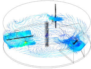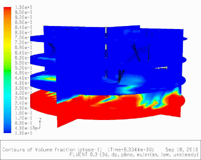 Transient simulation of a biogas digester with two paddel stirrers and four different phases (5.5MB)