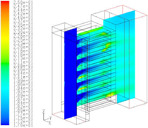 Through optimized flow regimes inside the racks and and improvements of the set-up and increase of the hot air temperature the energy consumption of the air-condition should be lowered. TU Vienna accompanied the optimization with measurements, calculations and numerical simulations (CFD).