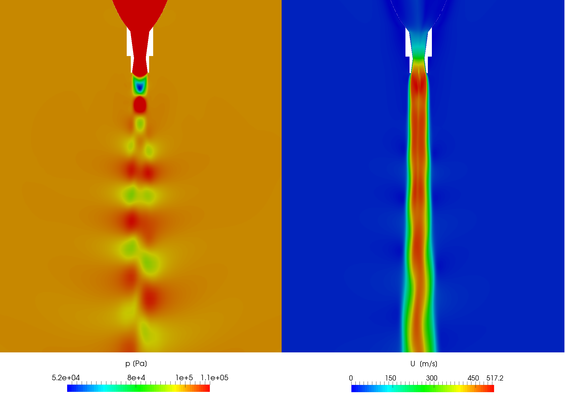 Pressure and velocity profile at the nozzle exit.